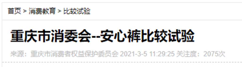 經(jīng)過深入了解,發(fā)現(xiàn)重慶市消費者權(quán)益保護委員會的確曾經(jīng)發(fā)布過關(guān)于安心褲的檢驗結(jié)果,此次對目前市場上比較暢銷的15款安心褲開展了比較試驗,主要對安心褲的衛(wèi)生性能、安全性能、功能性指標、舒適性指標等進行測試。.png)